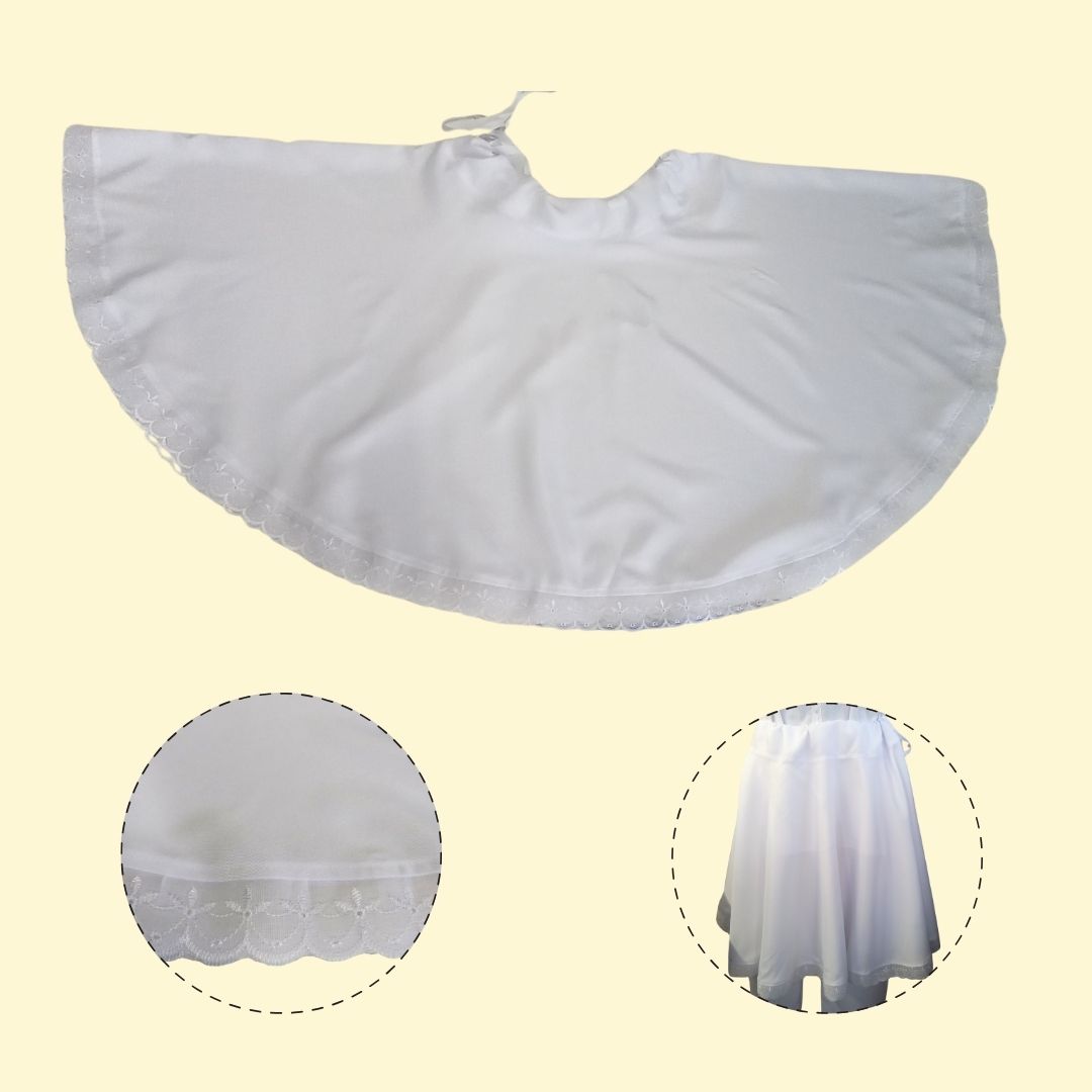 Medidas saia com fita de cetim: Largura máxima da cintura (ajustável por meio de cordãoi): 1,26cm Comprimento: 61cm